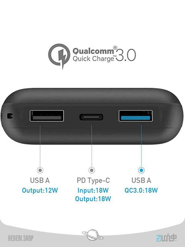 پورت خروجی USB این پاوربانک، به فناوری شارژ سریع 3.0 pd مجهز شده است.