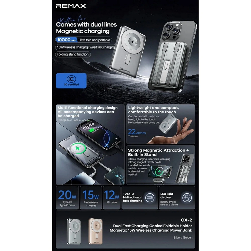 پاور بانک 10000 میلی آمپر مگ سیف ریمکس مدل Remax 10000mAh Wireless Power Bank CX2