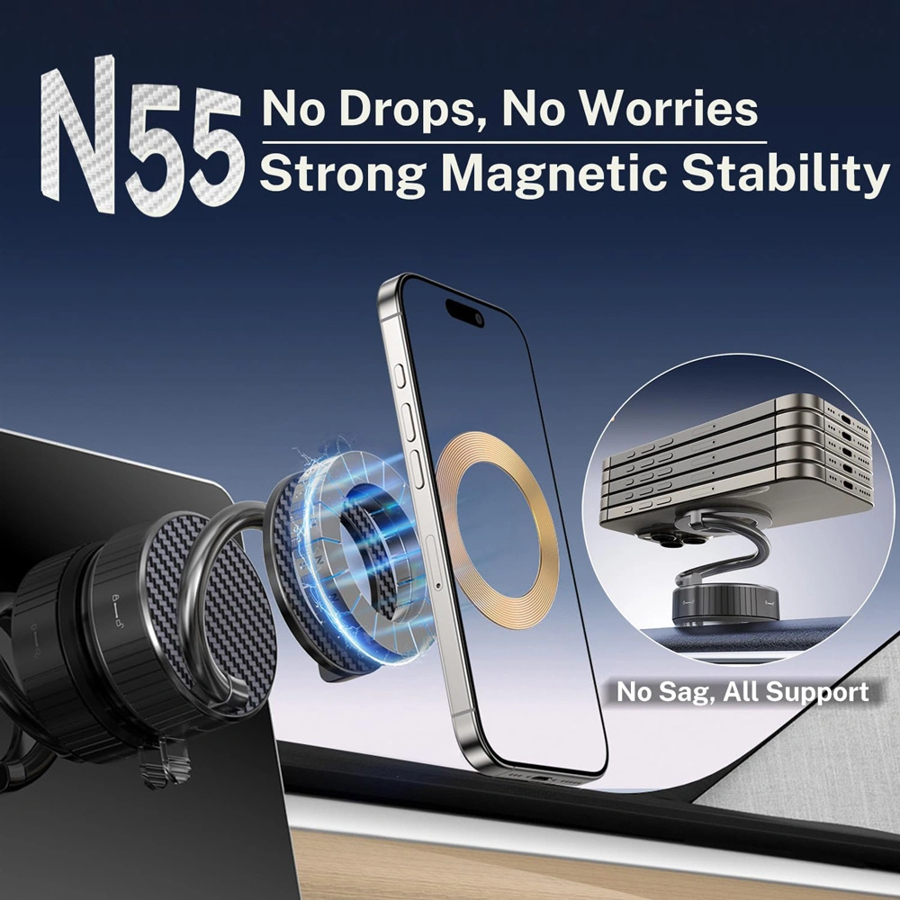 میدان مغناطیسی قدرتمند، حتی گوشیهای سنگین و دارای قاب ضخیم را نیز بدون لغزش نگه میدارد. -