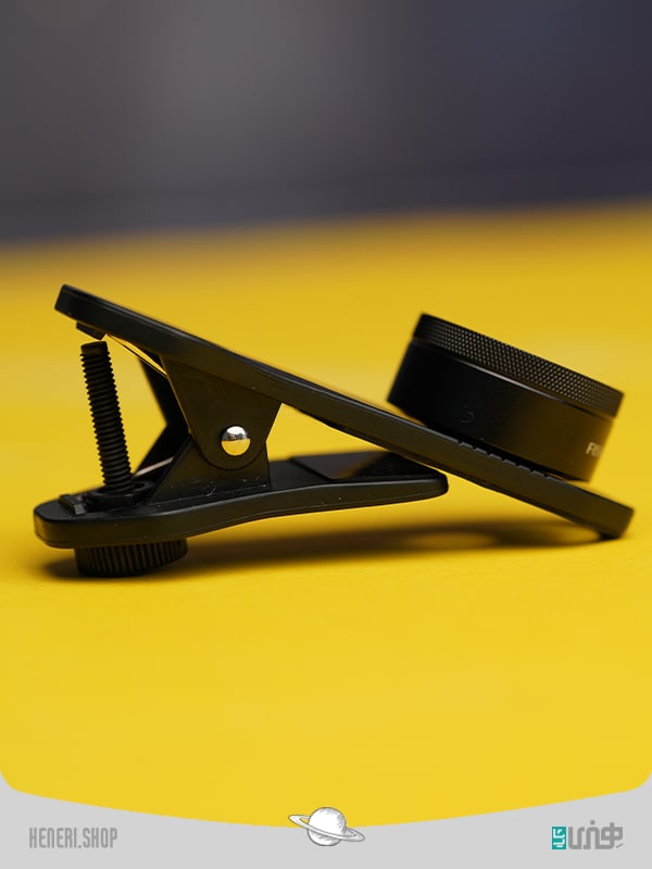 - گیره را روی دوربین گوشی تنظیم کنید جوری که قسمت لنز روی دوربین قرار بگیرد و پیچ را به عقب بکشید.