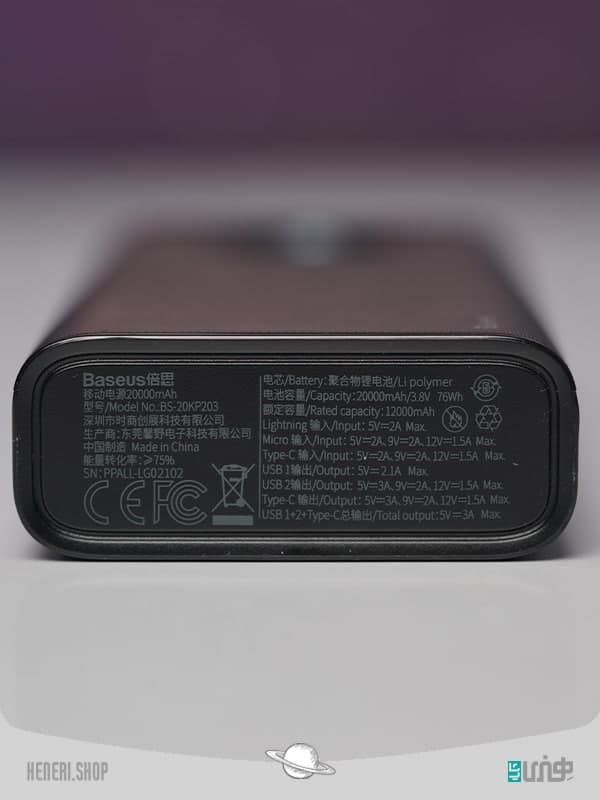پاوربانک باسئوس، بدنه ای از جنس ABS و PC دارد که مقاومت و دوام مناسبی دارد.