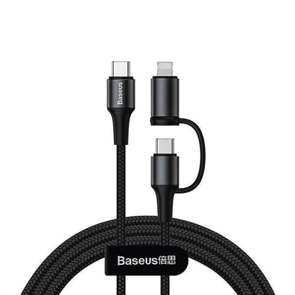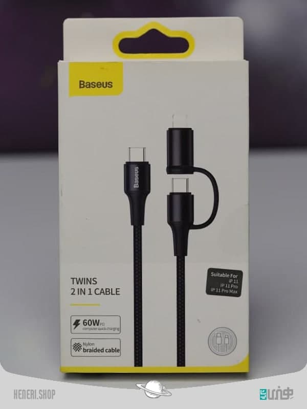 کابل سریع دو سر تایپ سی و لایتنینگ باسئوس Baseus Twin 2in1 60W PD Quick Charging cable 1m