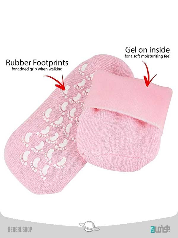 این جوراب ژله ای و انعطاف پذیر بسیار پر کاربرد و راحت می باشد و شما در خانه به راحتی می توانید با پوشیدن این جوراب ها و اضافه کردن کرم و لوسین های نرک کننده،