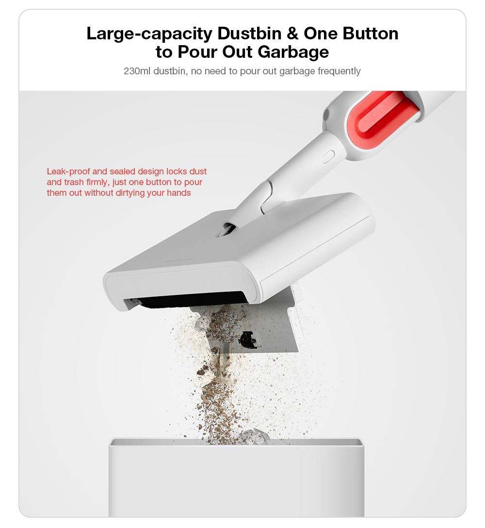طی شی دومنظوره Deerma علاوه بر جمع آوری گرد و غبار و آشغال، میتونه کار شست و شوی محل رو هم انجام بده،