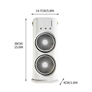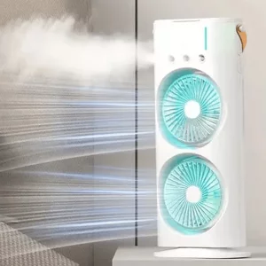 پنکه مه پاش دو فن دار انتخابی بینقص برای شماست این پنکه با طراحی مدرن، نورپردازی RGB، قابلیت چرخش و کنترل از راه دور، مناسب استفاده روی میز کار، اتاق خواب، گیمینگ روم یا حتی فضاهای کاری خاص است.
