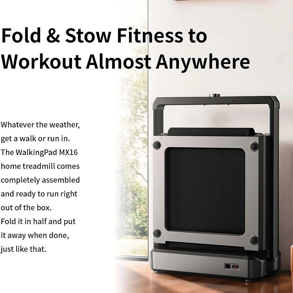 تردمیل MX16 از نظر طراحی، ترکیبی از زیبایی صنعتی و کارایی عملی است. بدنهی آلومینیومی آن علاوه بر استحکام بالا، وزن دستگاه را کاهش داده و ظاهری مدرن و شیک ایجاد کرده است. این طراحی مینیمال بهخوبی با دکوراسیون خانهها و فضاهای مدرن هماهنگ میشود. نمایشگر LED زاویهدار، به کاربر اجازه میدهد در هنگام حرکت، اطلاعات تمرینی خود را بدون نیاز به توقف مشاهده کند. این صفحه نمایش دادههای مهمی همچون سرعت، زمان تمرین، مسافت طیشده، میزان کالری مصرفی و ضربان قلب را با وضوح بالا نمایش میدهد. مکانیزم تاشو یکی از نقاط قوت اصلی این مدل است. تردمیل را میتوان پس از استفاده، در کمتر از چند ثانیه جمع کرده و در گوشه اتاق یا زیر تخت قرار داد. این ویژگی، آن را به گزینهای عالی برای آپارتمانها و فضاهای کوچک تبدیل کرده است.