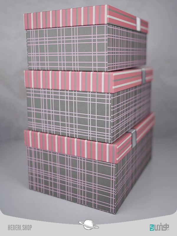 جعبه هدیه مستطیلی طوسی صورتی (3سایز) Pink gray rectangular gift box