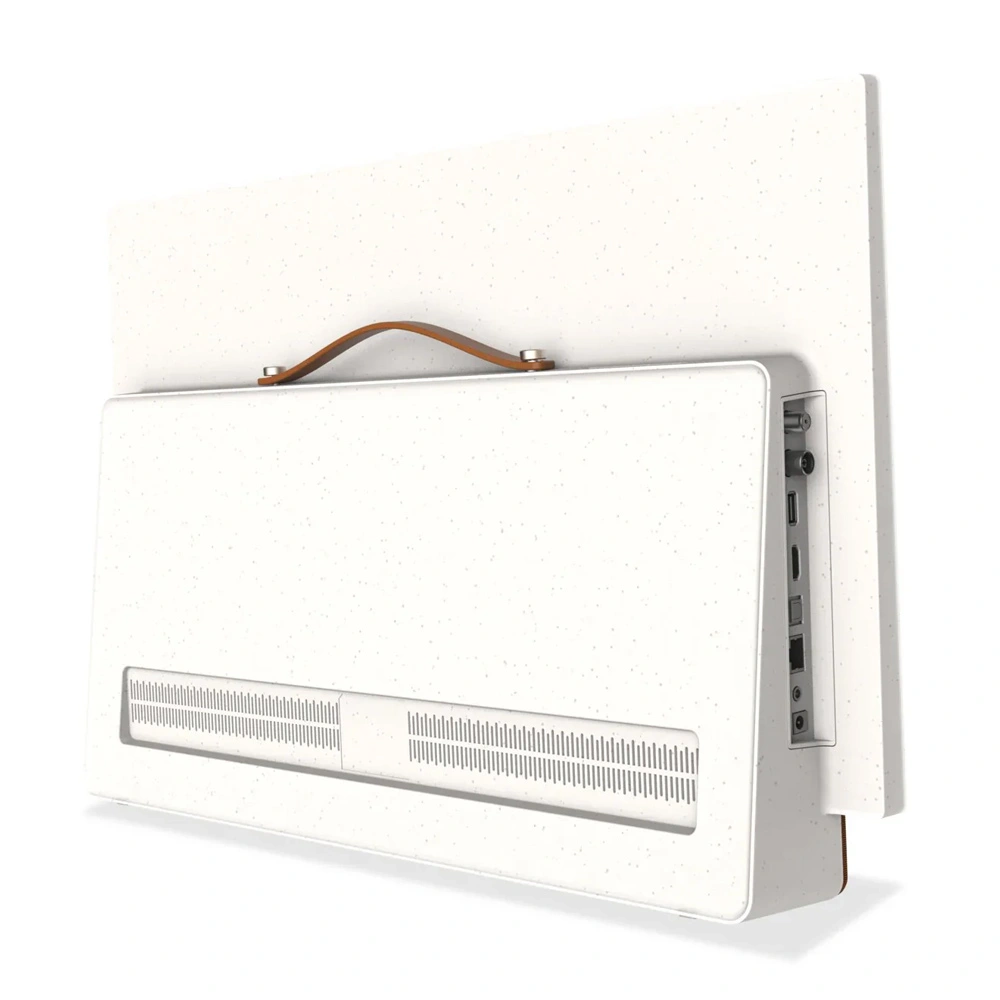 در بخش صوتی نیز، این دستگاه با دو بلندگوی ۸ واتی و پشتیبانی از فناوری Dolby Audio صدایی واضح و همهجانبه ارائه میدهد. طراحی مدرن با دستگیره چرمی حمل باعث میشود جابهجایی دستگاه بسیار آسان باشد، درحالیکه وزن و ابعاد مناسب آن (۲۳ × ۵۵ × ۳۶ سانتیمتر) استفاده در خانه، خودرو، کمپینگ یا حتی محل کار را ممکن میسازد. از دیگر ویژگیهای مهم این تلویزیون میتوان به اتصال بیسیم از طریق Wi-Fi و بلوتوث، کنترل صوتی با فرمان “Hey Google”، درگاههای HDMI و USB، و مصرف انرژی بهینه اشاره کرد. بدنه مقاوم و طراحی ظریف دستگاه، حس لوکس و کارآمدی را همزمان منتقل میکند.