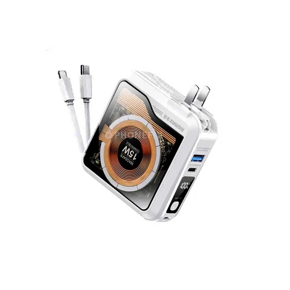 برای راحتی بیشتر کاربران، این پاوربانک بهصورت پیشفرض با دو کابل Type-C و Lightning عرضه میشود. این ویژگی موجب صرفهجویی در هزینه خرید کابلهای اضافی شده و از طرفی باعث میشود که بتوانید هم گوشیهای اندرویدی و هم دستگاههای اپل را بدون نیاز به تجهیزات اضافی شارژ کنید.